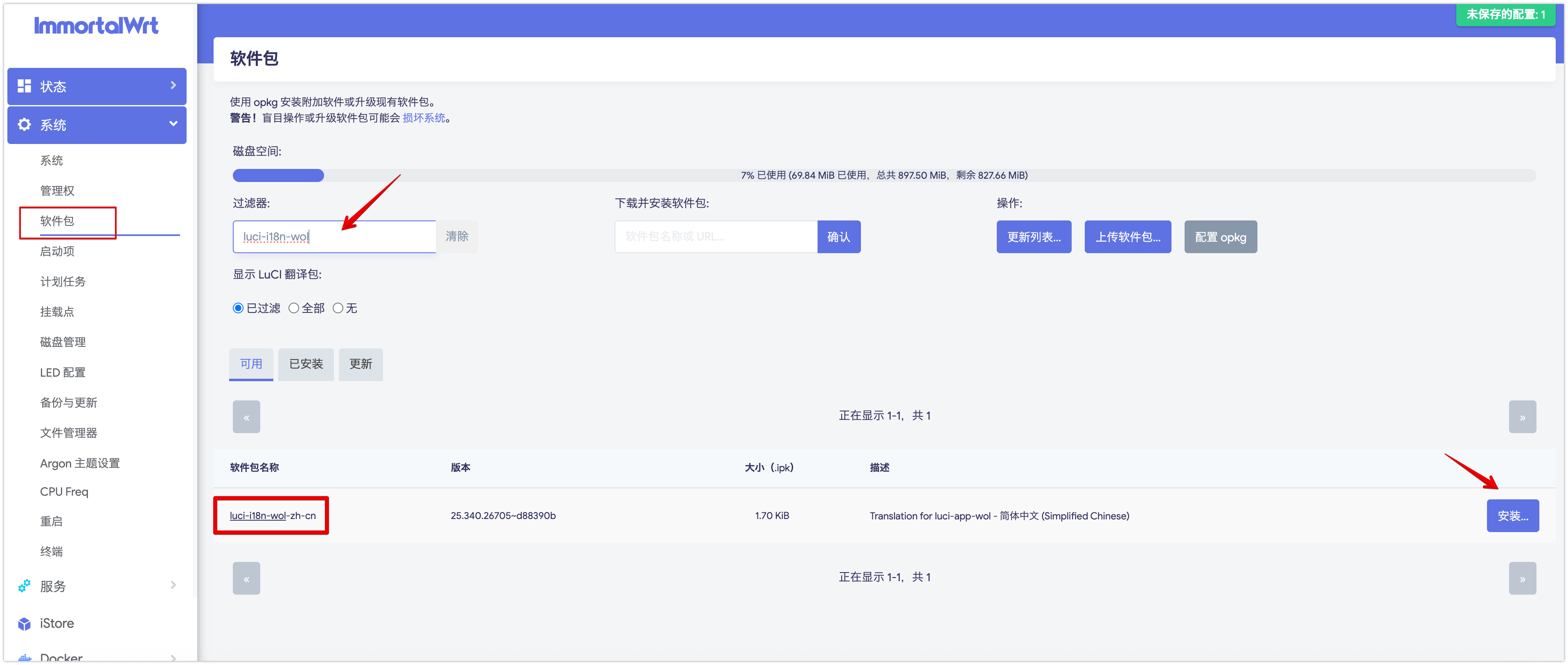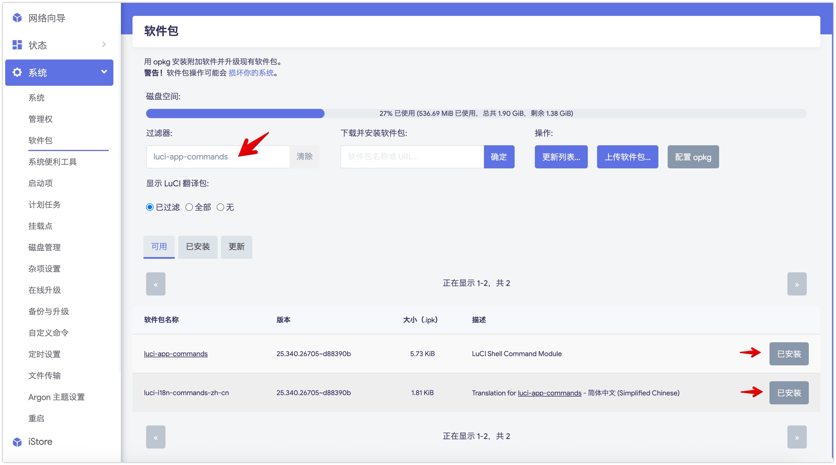 方法:系统——软件包 搜索 luci-i18n-wol-zh-cn 和 luci- i18n-commands-zh-cn